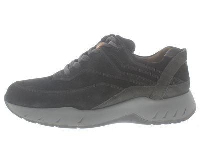 Sportieve heren casual sneaker van Gijs met een extra dikke dempende Mark afwikkelzool die neutraal afwikkelt, waardoor dit een zeer goede alledaagse schoen is voor de lange en korte wandelingen. Het type 2091 heeft een unieke afwikkeling die je actieradius bij het lopen vergroot door een zoolverstijving, samen met een hippe look wordt de peesplaat ontlast en vermindert pijn bij artrose. Zwart suède leer met mesh sieren deze schoen. Wijdte K, geschikt voor de brede voet. Uitneembaar voetbed.