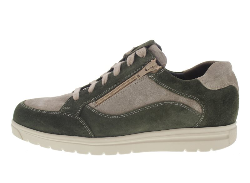 Gijs casual heren veterschoen, model 2163K+. Voorzien van een GO Men onderwerk voor een makkelijkere afwikkeling met sturing naar de grote teen. Hierdoor ontstaat er meer balans en in combinatie met een stevig contrefort komen blits en comfort elkaar tegen. De gepolsterde tong zorgt voor een perfecte fit op de wreef. Groen met kokos bruin suède. Wijdte K+, geschikt voor de brede en volle voet. Uitneembaar voetbed. De GO Men afwikkelzool heeft een verlichtende werking bij hiel- en voorvoet gerelateerde klachten, en de dubbele ritssluiting maakt van het aan- en uittrekken van deze schoen een kwestie van seconden. Hakhoogte 38mm. Hielheffing 20mm. Bescherm en verzorgadvies: Impregneren met Collonil Carbon Pro