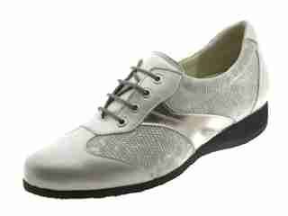 Schneider dames veterschoen, model 326-419C. Voorzien van een flexibele Strada onderwerk met een hielheffing van 2,5cm. Zilver multi glad leer. Wijdte C, geschikt voor de zeer smalle voet. Uniek aan het merk Schneider is dat de schoenen handgemaakt worden en alleen verkrijgbaar zijn voor dames met een zeer smalle voet. dit model heeft een iets meer gezwaaide leest. Uitneembaar voetbed.