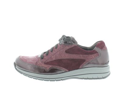 Durea dames veterschoen, model 6148, wijdte H voor de normale voet, combi bordo nubuck- en lakleer, hakhoogte 17 mm, uitneembaar voetbed. Speciaal 1948 verstijfde zool voor demping van de voorvoet en fijne afwikkeling.
