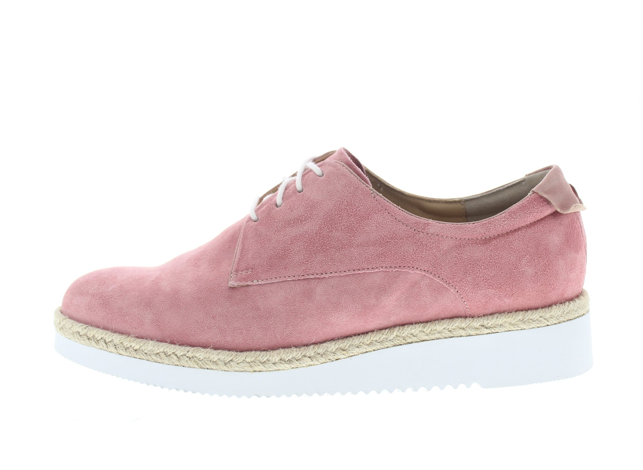 Durea veterschoen, model 6191K. Voorzien van een EVA dempende Sabina onderwerk voor extra schokabsorptie. Stevig contrefort met een neutrale afwikkeling. Roze suède. Wijdte K, geschikt voor de brede voet. Uitneembaar voetbed.