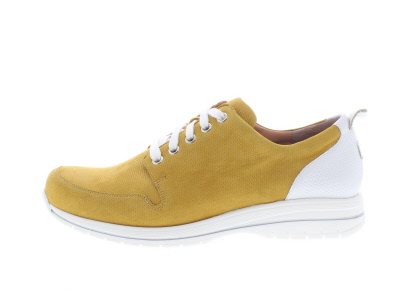 Deze leuke okergele veterschoen is van het merk Durea en is gemaakt op een wijdte H. Dus geschikt voor een bredere voet. Het voetbed is uitneembaar en de loopzool is voorzien van een afwikkeling.