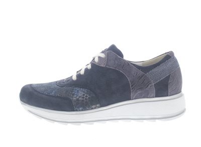 Durea casual dames sneaker, model 6225H op een Sophie verstijfde afwikkelzool voor extra loopcomfort door een versnelde afwikkeling. Ontlast daardoor voorvoet gerelateerde klachten, en een stevige contrefort voor een goede enkelstabiliteit. De hielheffing ondersteunt een geïrriteerde peesplaat en achillespees. Blauw nubuck met een stretch voorblad. Het stretch gedeelte verlicht druk bij een hallux valgus, bunion, hamer of klauwteen. Wijdte H, geschikt voor de gemiddelde voet. Uitneembaar voetbed.