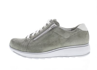 Durea casual dames sneaker, model 6286K+ op een Sophie verstijfde afwikkelzool voor extra loopcomfort door een versnelde afwikkeling. Kaki suède met een dubbele rits voor het instapgemak. Wijdte K+, geschikt voor de zeer brede voet. Dubbel uitneembare voetbed voor extra ruimte bij een zeer volle voet. Hakhoogte 40mm. Hielheffing 23mm.