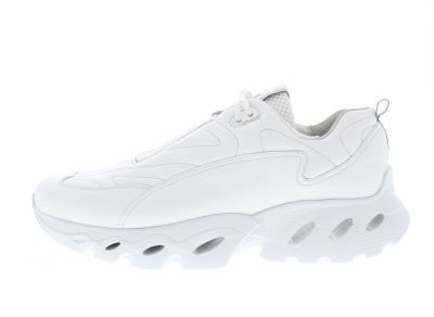 Flow Motion – by Durea – dames sneaker, model 6311H op een modieuze Teddy afwikkelzool. Door de ”Airy-Flow-Soft-Grounded” motto zorgt de Flow Motion voor een stabiele en dempende looppatroon, vergemakkelijkt door een versnelde teensprong. Aangenaam bij metatarsale en gelimiteerde afwikkelklachten van het grote teengewricht. Verlengd contrefort voor een goede hielstabiliteit, hoewel deze lager zit dan normaal, waardoor deze niet de enkel irriteert. De hielheffing ondersteunt een geïrriteerde peesplaat en achillespees. Extra gepolsterde tong voor een compacte fit rond de wreef, zonder irritatie bij een hoge wreef. Wit leer met mesh. Wijdte H, geschikt voor de iets bredere voet. Uitneembaar voetbed. Hakhoogte 50mm. Hielheffing 20mm. Impregneren met Collonil Carbon Pro voor het beste resultaat