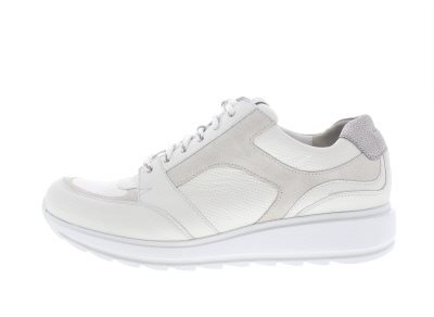 Durea casual dames sneaker, model 6315H op een Sophie verstijfde afwikkelzool voor extra loopcomfort door een vervroegde afwikkeling. Ontlast daardoor voorvoet gerelateerde klachten, en een stevig contrefort voor een goede enkelstabiliteit. De hielheffing ondersteunt een geïrriteerde peesplaat en achillespees. Wit leer, met een mediale rits voor het instapgemak. Wijdte H, geschikt voor de iets bredere voet. Uitneembaar voetbed. Hakhoogte 40mm. Hielheffing 23mm. Impregneren met Collonil Carbon Pro voor het beste resultaat