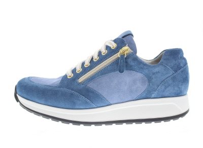 Durea dames sneaker, model 6322H op een dynamische Noor afrollende loopzool voor extra loopcomfort voor een betere sturing en balans. Aangenaam bij metatarsale klachten vanwege de dempende eigenschappen. Verlengd contrefort voor een goede hielstabiliteit. De hielheffing ondersteunt een geïrriteerde peesplaat en achillespees. Extra gepolsterde tong voor een compacte fit rond de wreef, zonder irritatie bij een hoge wreef. Functionele rits aan de laterale zijde. Blauw suède. Wijdte H, geschikt voor de iets bredere voet. Uitneembaar voetbed. Hakhoogte 40mm. Hielheffing 23mm. Impregneren met Collonil Carbon Pro voor het beste resultaat