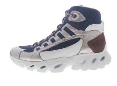 Flow Motion – by Durea – enkelhoge dames sneaker, model 9831H op een modieuze Teddy afwikkelzool. Door de ”Airy-Flow-Soft-Grounded” motto zorgt de Flow Motion voor een stabiele en dempende looppatroon, vergemakkelijkt door een versnelde teensprong. Aangenaam bij metatarsale en gelimiteerde afwikkelklachten van het grote teengewricht. Verlengd contrefort voor een goede hielstabiliteit, hoewel deze lager zit dan normaal, waardoor deze niet de enkel irriteert. De hielheffing ondersteunt een geïrriteerde peesplaat en achillespees. Extra gepolsterde tong voor een compacte fit rond de wreef, zonder irritatie bij een hoge wreef. Antraciet leer met mesh. Wijdte H, geschikt voor de gemiddelde voet. Uitneembaar voetbed. Hakhoogte 50mm. Hielheffing 20mm. Impregneren met Collonil Carbon Pro voor het beste resultaat