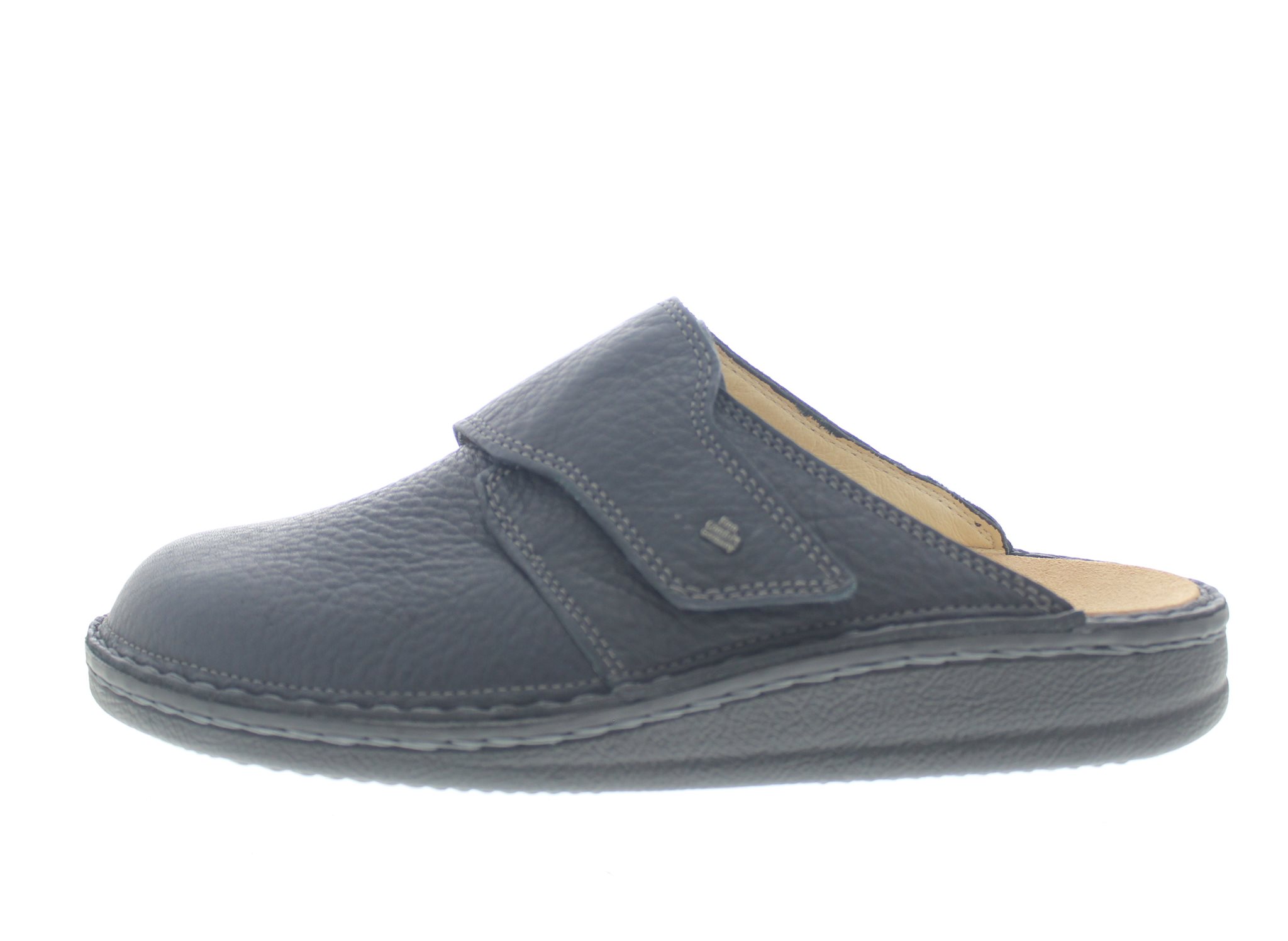 Finn Comfort heren muil, model Amalfi uit de Classic lijn. Blauw leer. Verstelbare overslag klittenbandsluiting op de wreef. Valt als een wijdte H, geschikt voor de normale tot iets bredere voet. Uitneembaar ecologisch en anatomisch gevormde voetbed.