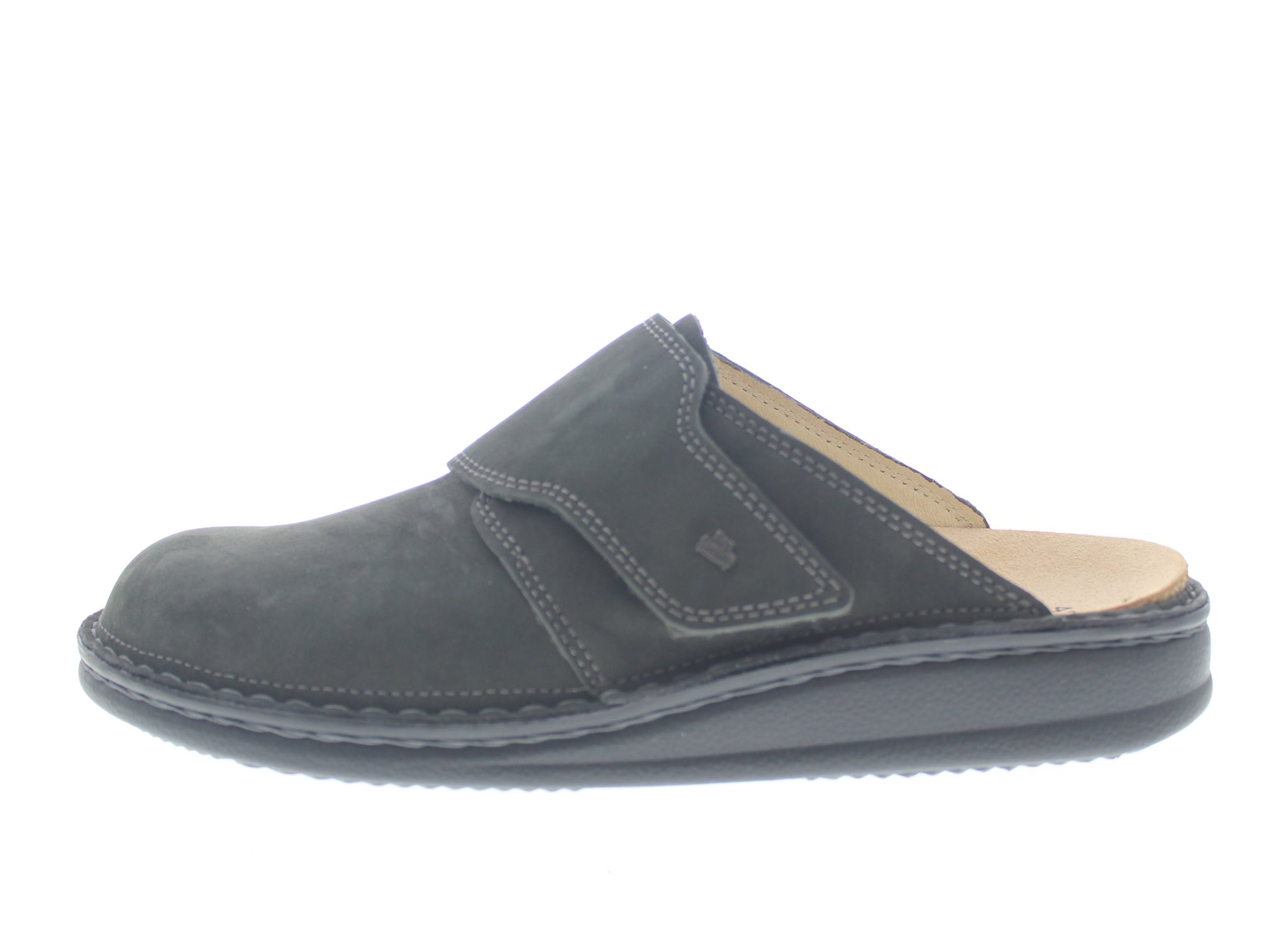 Finn Comfort heren muil, model Amalfi uit de Classic lijn. Grijs nubuck. Verstelbare overslag klittenbandsluiting op de wreef. Valt als een wijdte H, geschikt voor de normale tot iets bredere voet. Uitneembaar ecologisch en anatomisch gevormde voetbed.