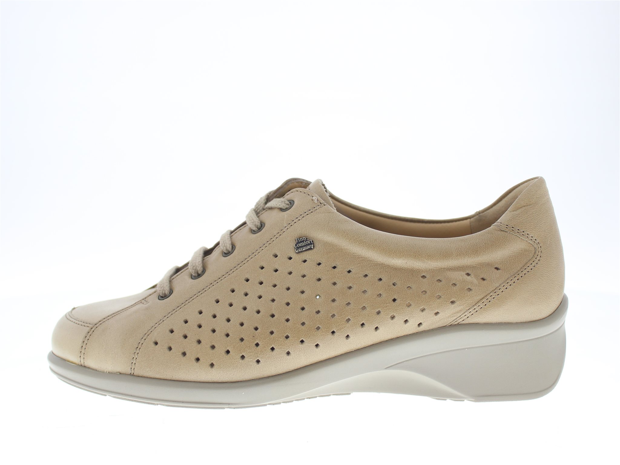 Finn Comfort dames veterschoen, model antibes uit de City lijn, beige glad leer, valt als een wijdte G, geschikt voor de normale tot smallere voet, uitneembaar voetbed.