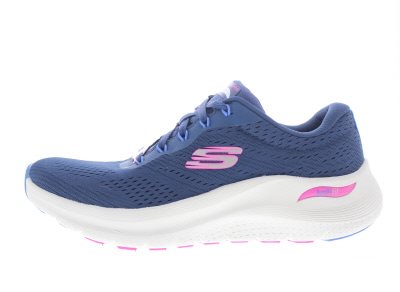 Skechers dames super lichtgewicht lifestyle veterschoen, model Arch Fit Big League. Blauw geweven en luchtdoorlatend boven materiaal en volledig synthetisch, Vegan verantwoord. Valt als een wijdte G tot H, geschikt voor de normale tot iets bredere voet. Dit model heeft een uitneembaar voetbed wat wel een focus heeft op het geven van steun in de voetboog, het onderwerk zorgt voor een aangenaam dynamische afwikkeling. Ook geschikt bij een geïrriteerde achillespees en peesplaat/hielspoor, en zeer comfortabel bij een hallux valgus/bunion. De dempende afwikkelzool heeft een goede grip en tractie. Hakhoogte 40mm. Hielheffing 20mm. Bescherm en verzorgadvies: Collonil Carbon Pro