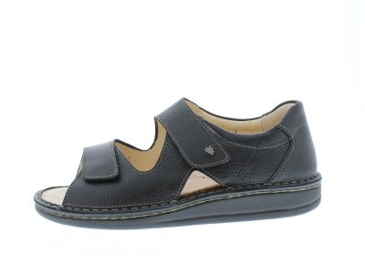 Finn Comfort sandaal met dichte hiel en twee verstelbare klittenbanden, model Argos-S uit de Classic lijn. Bruin leer. Valt tussen een wijdte H en K, geschikt voor de gemiddelde tot iets bredere voet. Uitneembaar ecologisch en anatomisch gevormde voetbed.