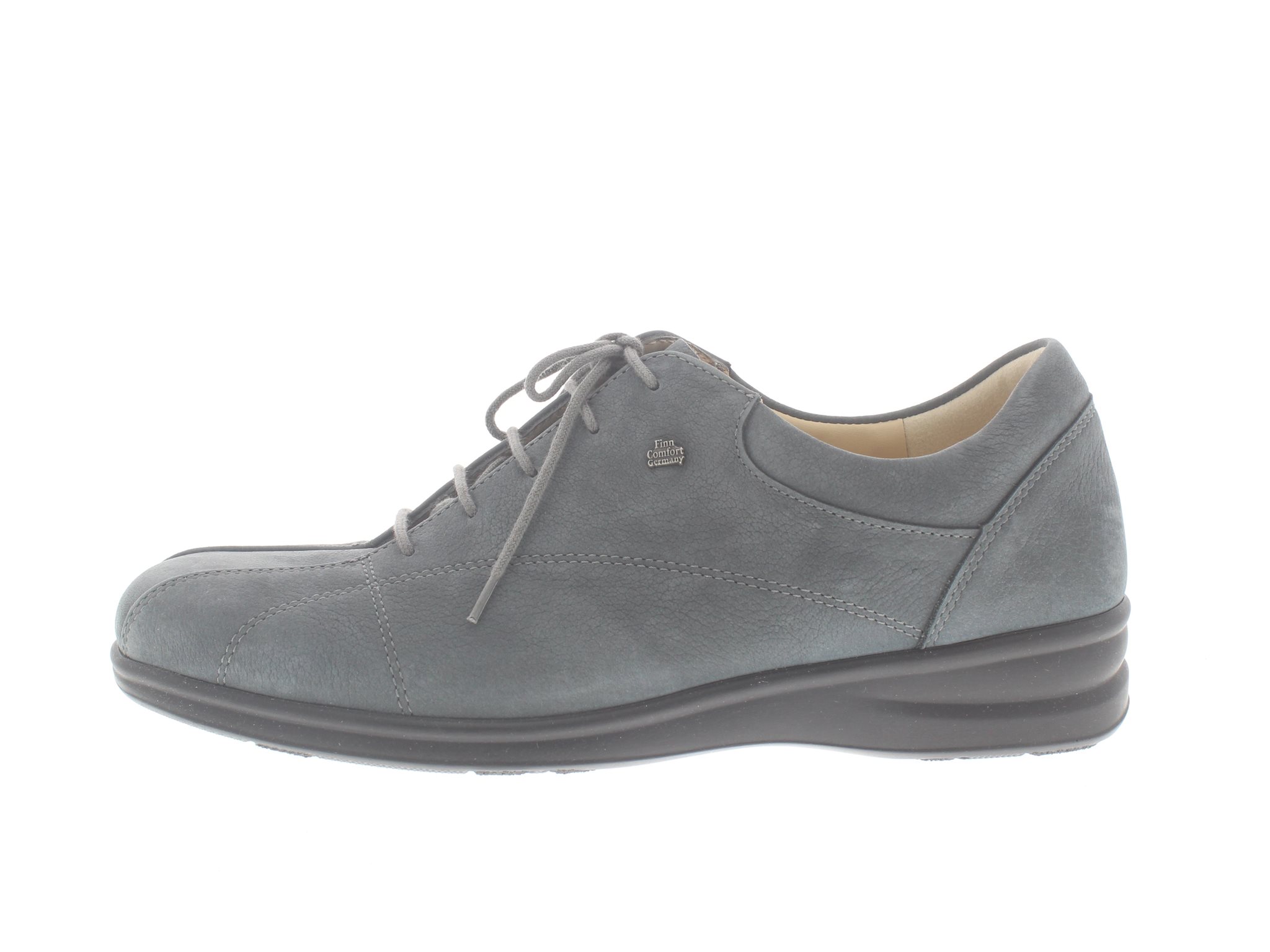 Finn Comfort dames veterschoen, model Ariano uit de FinnSlim lijn. Voorzien van een flexibele loopzool met. Grijs nubuck leer. Valt als een wijdte G. Geschikt voor de normale voet. Uitneembaar ecologisch en anatomisch gevormde voetbed. Finn Comfort inlegzolen zijn los verkrijgbaar.