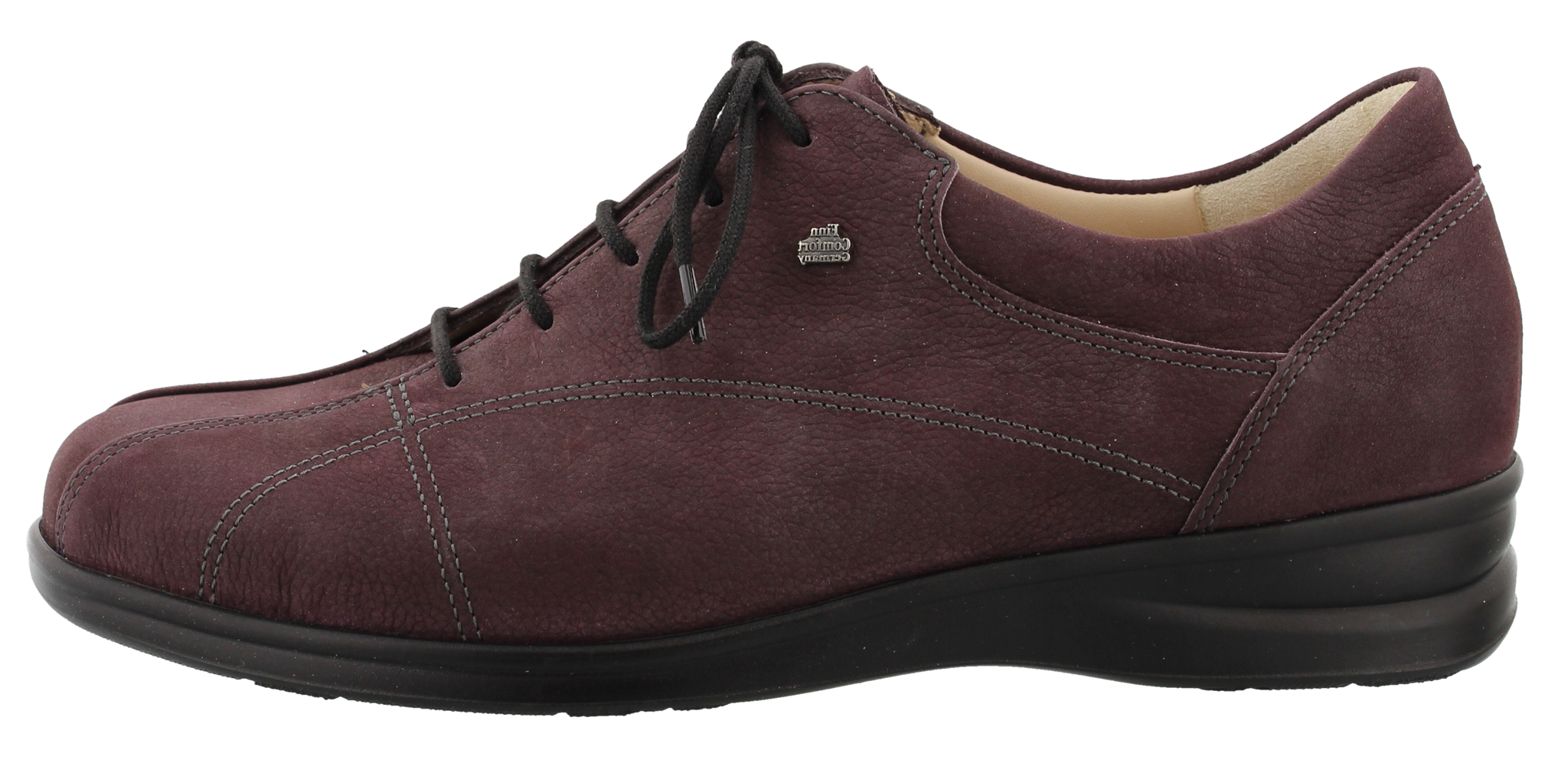 Finn Comfort dames veterschoen, model Ariano uit de FinnSlim lijn. Minimalistische schoen met een soepele loopzool. Bordo nubuck. Valt als een wijdte G, geschikt voor de gemiddelde voet. Uitneembaar ecologisch en anatomisch gevormde voetbed.