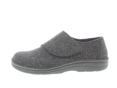 Berkemann heren pantoffel met klittenband, model Balian. Grijs wolvilt. Valt tussen een wijdte H en K. Uitneembaar voetbed.