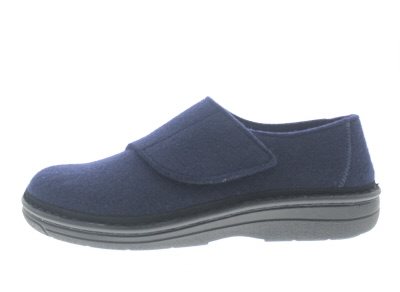 Berkemann heren pantoffel met klittenband, model Balian. Blauw wolvilt. Valt tussen een wijdte H en K. Uitneembaar voetbed.