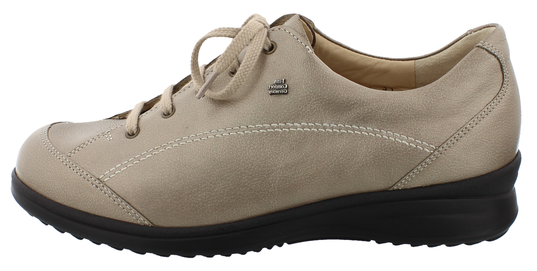 Finn Comfort dames veterschoen, model Bath uit de LadyLine. Voorzien van een soepele loopzool met een antislip profiel en een stevig contrefort voor extra hielstabiliteit. Goede pasvorm bij een hoge wreef, hoewel de minimalistische look een slanke uitstraling heeft. Beige metallic leer. Valt als een wijdte K met een meer toegeknepen hielslot ten opzichte van een bredere balwijdte. Geschikt voor de brede voet. Uitneembaar ecologisch en anatomisch gevormde voetbed. Finn Comfort inlegzolen zijn los verkrijgbaar. Hakhoogte 40mm. Hielheffing 25mm.