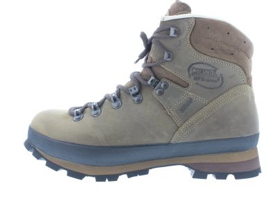 Meindl bergwandelschoen, model Bernina 2, Comfort Fit leest voor de brede voet, Meindl multigrip 3 Alpin Light Vibram buitenzool voorzien van slikrand, categorie B voor het echte wandelwerk, lederen binnenvoering, bruin nubuckleer, uitneembaar voetbed. Gewicht van de schoen 870 gram.