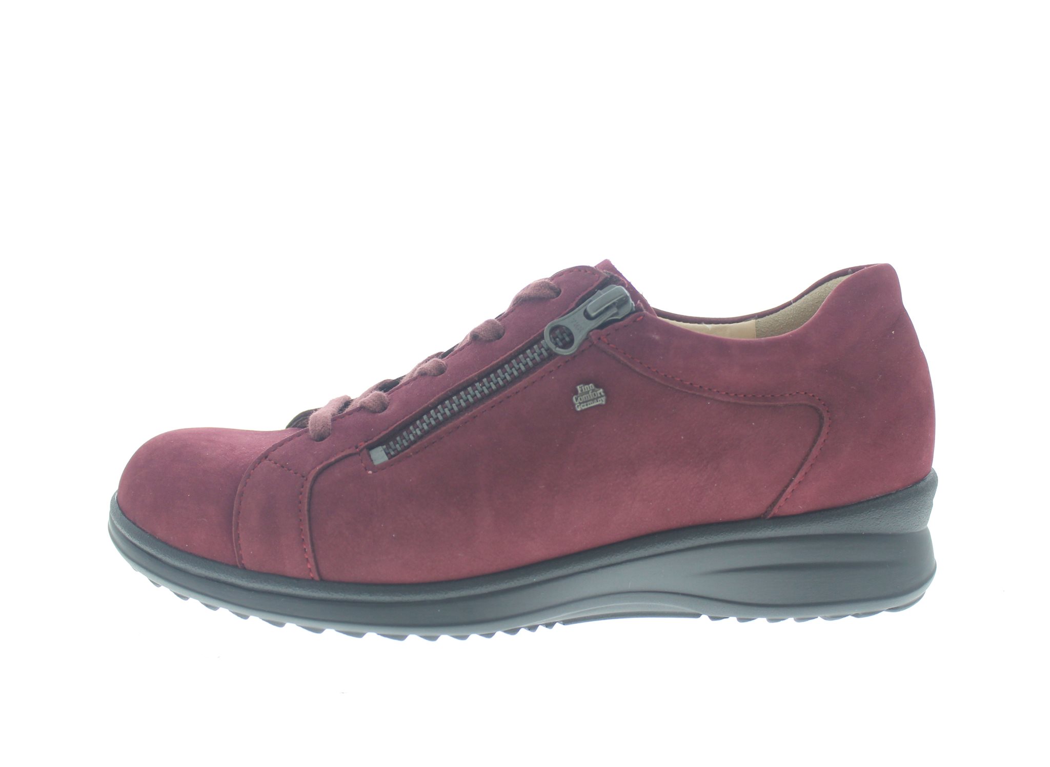 Finn Comfort dames casual veterschoen, model Bexley uit de LadyLine series. Bordo nubuck. Valt als een wijdte H, geschikt voor de normale tot iets bredere voet. Uitneembaar voetbed, ruime ronde neus met een hoge teenbox om alle gevoelige tenen vrij te houden van druk.