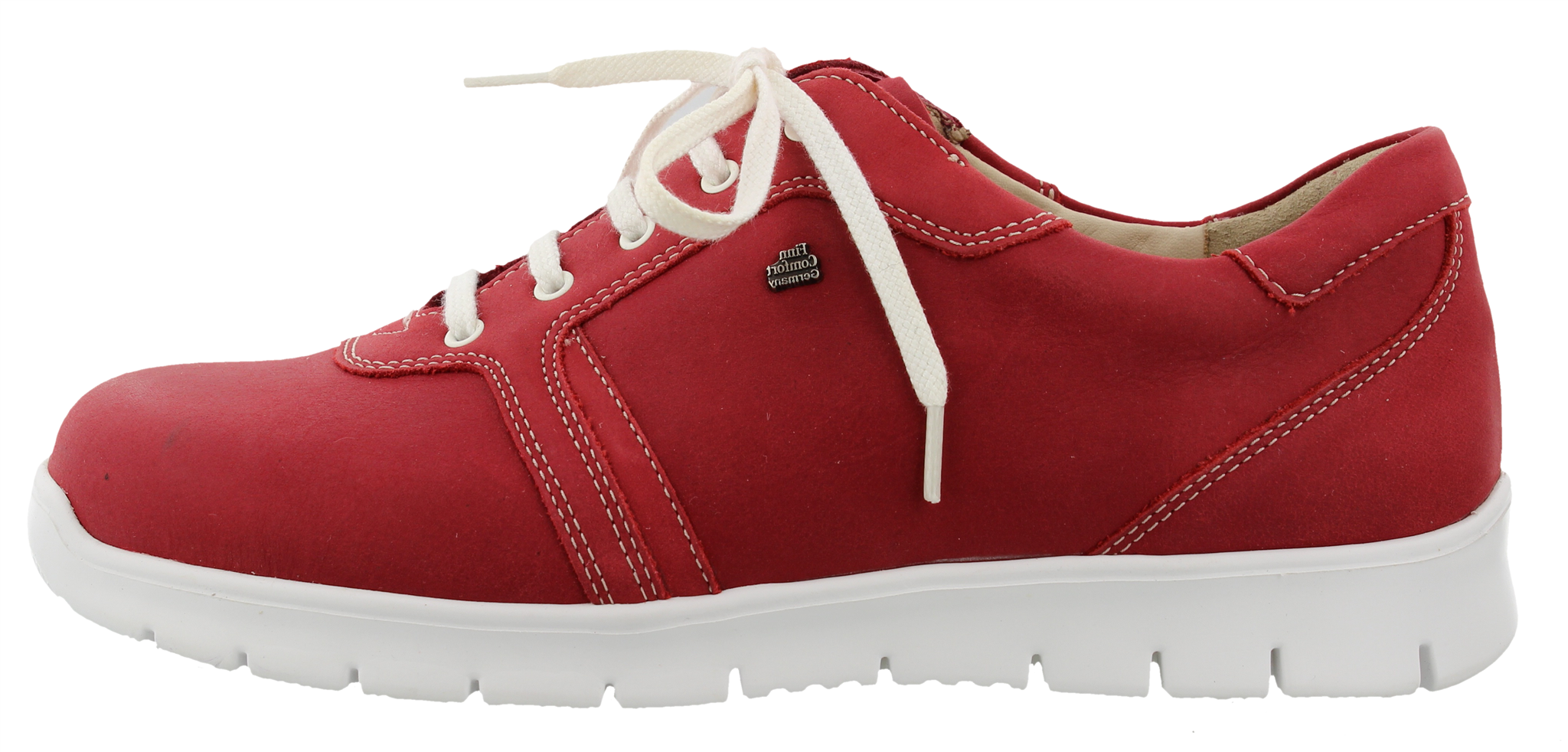 Finn Comfort dames veterschoen, model Biscaya uit de FinnRelax lijn, rood nubuck leer, valt als een wijdte H, geschikt voor de normale tot iets bredere voet, uitneembaar voetbed.