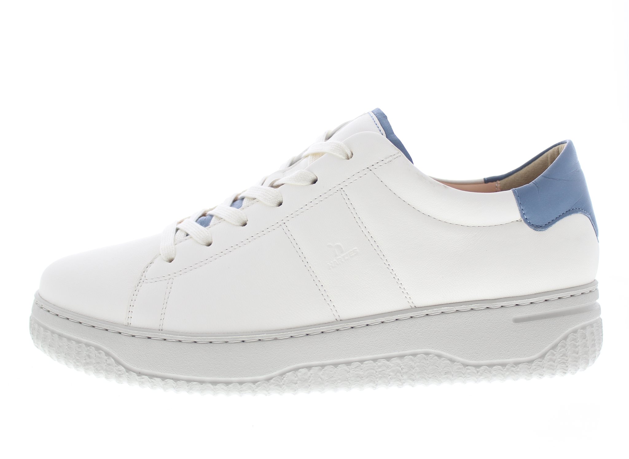 Hartjes dames veterschoen, model Boogie uit de Natural lijn. Dit model is volledig allergeen vrij. Licht van gewicht vanwege de EXTRALIGHT rubberen loopzool met heerlijk dempende eigenschappen. Wit (off-white) leer met blauwe details. Voorzien van een uitneembaar voetbed. Functionele rits aan de mediale zijde voor extra gemak bij het aan- en uittrekken. Wijdte H, geschikt voor de iets bredere voet met een redelijk vierkante teenbox voor extra ruimte voor de kleine teen.