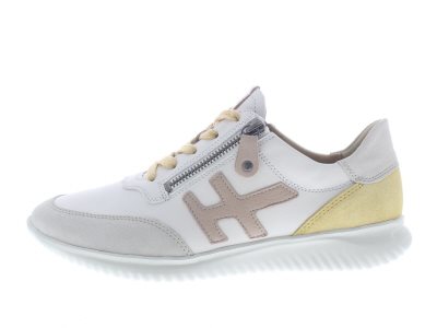 Hartjes modieuze sneaker, model Breeze met een dubbele rits voor het instapgemak. Dit model is uit de Natural lijn, en volledig allergeenvrij. Beige nubuck gecombineerd met leer en gele details. De Breeze heeft een snelle teensprong voor een dynamische afwikkeling en is extreem lichtgewicht. Wijdte G met iets meer toegift rond de balwijdte, geschikt voor de normale tot iets bredere voet. Uitneembaar voetbed. Dit model is chroomvrij.