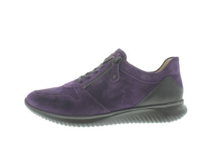 Hartjes modieuze sneaker, model Breeze 1 met een ritsje voor het instapgemak, paars suède, wijdte G met iets meer toegift rond de balwijdte, uitneembaar voetbed.