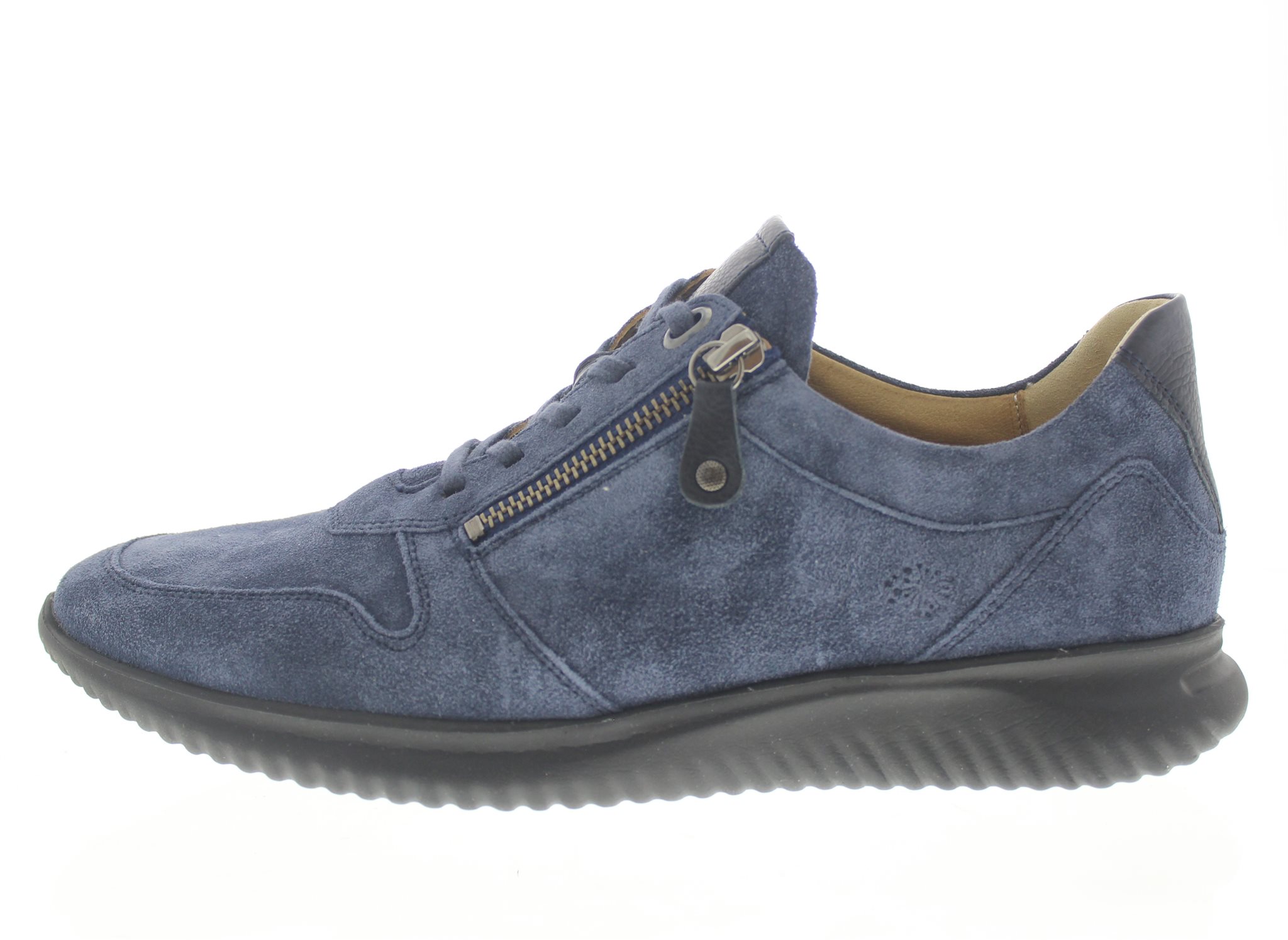 Hartjes modieuze sneaker, model Breeze met een laterale rits voor het instapgemak. Staalblauw suède. De Breeze heeft een snelle teensprong voor een dynamische afwikkeling en is extreem lichtgewicht. Wijdte G met iets meer toegift rond de balwijdte, geschikt voor de normale tot iets bredere voet. Uitneembaar voetbed. Dit model is chroomarm. Hakhoogte 35mm. Hielheffing 20mm. Impregneren met Collonil Carbon Pro voor de beste bescherming