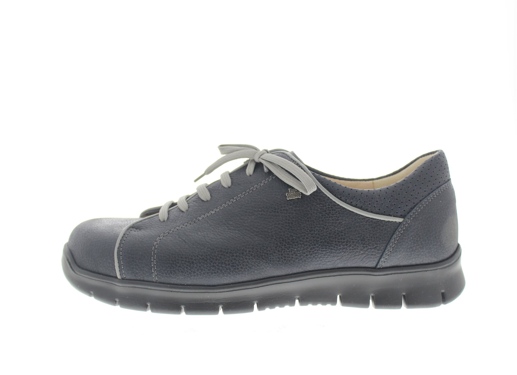 Finn Comfort dames veterschoen, model Canaria uit de FinnRelax lijn. Voorzien van een lichtgewicht flexibele loopzool met dempende eigenschappen. Blauw nubuck leer. Valt als een wijdte H, geschikt voor de normale tot iets bredere voet. Uitneembaar ecologisch en anatomisch gevormde voetbed. Hakhoogte 30mm. Hielheffing 12mm.