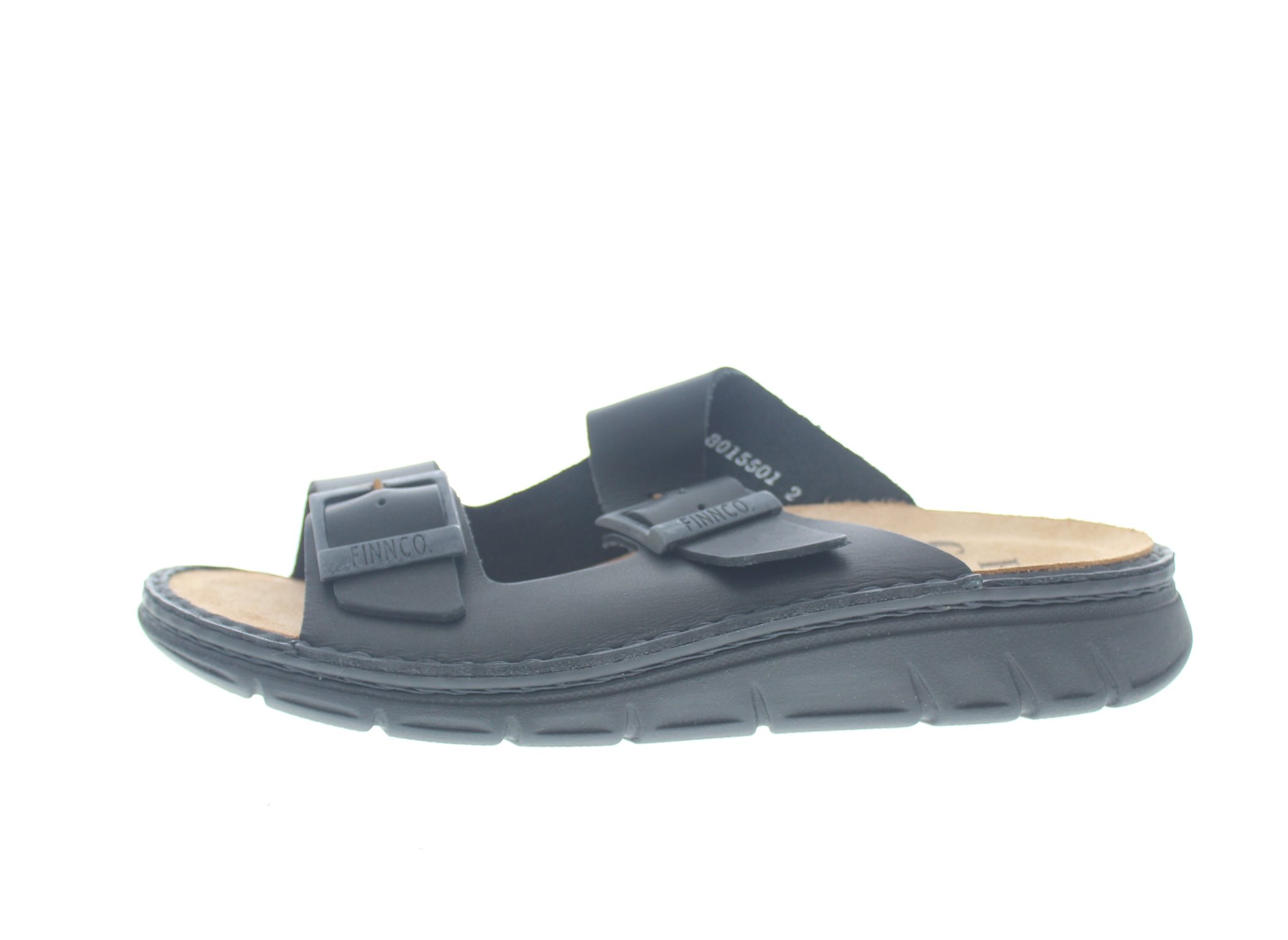 Finn Comfort heren slipper, model Cayman-S uit de ClassicSoft lijn. Klassiek verstelbare sluiting met gespen en dichte flanken voor extra support. Zwart leer. Valt als een wijdte K, geschikt voor de bredere voet, maar door de verstelbare banden ook te dragen als een H wijdte. Deze leest heeft een natuurlijke pasvorm. Uitneembaar ecologisch en anatomisch gevormde voetbed.