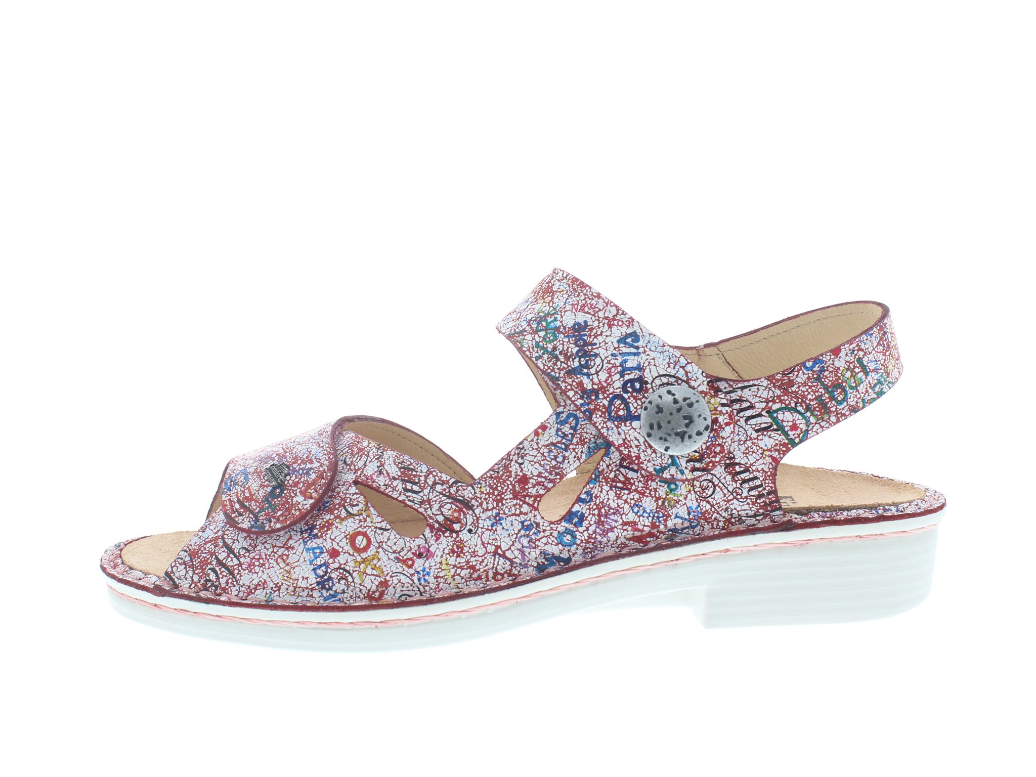 Finn Comfort dames sandaal, model Costa uit de CitySport lijn. Voorzien van twee overslag klittenbandsluitingen. Flexibele loopzool voor een voet met weinig voetklachten, terwijl de voetboog zeer goed word ondersteunt. Rood nubuck leer met een fantasieprent van polyurethane. Valt als een wijdte H, geschikt voor de normale tot iets bredere voet. Uitneembaar ecologisch en anatomisch gevormde voetbed.