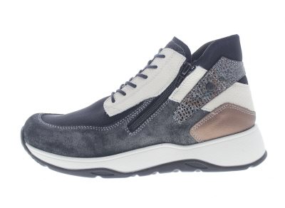 Wolky dames enkelhoge sneaker, model Crown S2F. Voorzien van een soepele afwikkelzool met een breed draagvlak voor een stabiele looppatroon met een comfortabele afrolling. Zwart met gemixte kleuren en soorten leer en mesh. Functionele rist aan de laterale zijde. Valt als een wijdte G, geschikt voor de normale voet. Uitneembaar voetbed. Hakhoogte 45mm. Hielheffing 25mm.