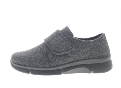 Berkemann dames pantoffel, model Dalida. Klittenbandsluiting voor de gewenste pasvom. Soepele zool met dempende eigenschappen. Donkergrijs wolvilt. Valt tussen een wijdte G en H, geschikt voor de gemiddelde voet. Uitneembaar voetbed.