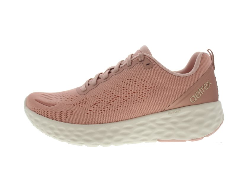 Aetrex dames lichtgewicht lifestyle sneaker, model Danika. Roze synthetisch materiaal. Valt tussen een wijdte G en H, geschikt voor de iets bredere voet. Uitneembaar voetbed. Het onderwerk zorgt voor een aangenaam dynamisch en schokdempende afwikkeling. Geschikt bij een geïrriteerde peesplaat, achillespees en hielspoor. De dempende afwikkelzool heeft een goede grip en tractie. Ook geschikt bij gelimiteerde afwikkelklachten van de grote teengewricht, hallux valgus en bunion.