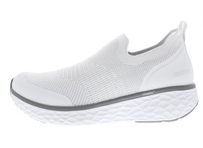 Aetrex heren lichtgewicht lifestyle instapper, model Dash Slip-On. Dit is een ‘Hands Free Slip-ins’ schoen, waarin je zo instapt. Wit synthetisch materiaal. Valt als een wijdte H, geschikt voor de iets bredere voet. Uitneembaar voetbed. Het onderwerk zorgt voor een aangenaam dynamisch en schokdempende afwikkeling. Geschikt bij een geïrriteerde peesplaat, achillespees en hielspoor. De dempende afwikkelzool heeft een goede grip en tractie. Ook geschikt bij gelimiteerde afwikkelklachten van de grote teengewricht, hallux valgus en bunion. Hakhoogte 45mm. Hielheffing 23mm. Bescherm en verzorgadvies: Collonil Carbon Pro