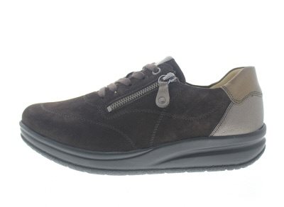 Hartjes dames veterschoen, model Diabetik M. Geschikt voor de gevoelige en kwetsbare voet. Diabetisch en reumatisch verantwoorde afwikkelschoen die helpt om de druk op de voorvoet en hiel te verlichten en makkelijk afwikkelt, dat voordelen kan hebben bij neuropatische klachten. Ook uitermate geschikt om de hallux valgus en bunion te ontzien van druk. Ervaar het voordeel van een laterale rits voor het instapgemak en zacht plantaardig gelooid kalfsleer. Bruin suède met leer. Hypoallergene DRYCLIM technologische binnenvoering voor een goede vochtregulatie. Uitneembaar voetbed. Hakhoogte 40mm. Hielheffing 20mm.