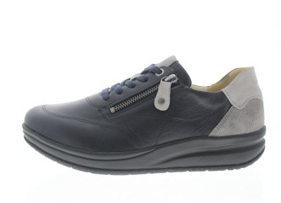 Hartjes dames veterschoen, model Diabetik M. Geschikt voor de gevoelige en kwetsbare voet. Diabetisch en reumatisch verantwoorde afwikkelschoen die helpt om de druk op de voorvoet en hiel te verlichten en makkelijk afwikkelt, dat voordelen kan hebben bij neuropatische klachten. Ook uitermate geschikt om de hallux valgus en bunion te ontzien van druk. Ervaar het voordeel van een laterale rits voor het instapgemak en zacht plantaardig gelooid kalfsleer. Blauw glad leer met grijze details. En met een hypoallergene DRYCLIM technologische binnenvoering voor een goede vochtregulatie. Uitneembaar voetbed. Hakhoogte 40mm. Hielheffing 20mm.