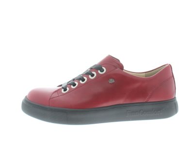 Finn Comfort dames sneaker in een retro tennis gympen look, model Elpaso uit de TrendLine, rood glad leer, valt als een wijdte H, geschikt voor de iets bredere voet, uitneembaar voetbed. De buitenzool geeft demping aan de voet.