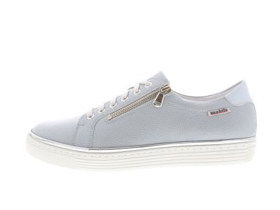 Mobils by Mephisto dames sneaker, model Eroline. Retro style voor een minimalistische look. Flexibele loopzool met een stevig contrefort en een functionele ritssluiting. Blauw leer. Valt als een wijdte G, geschikt voor de normale voet. Uitneembaar voetbed.