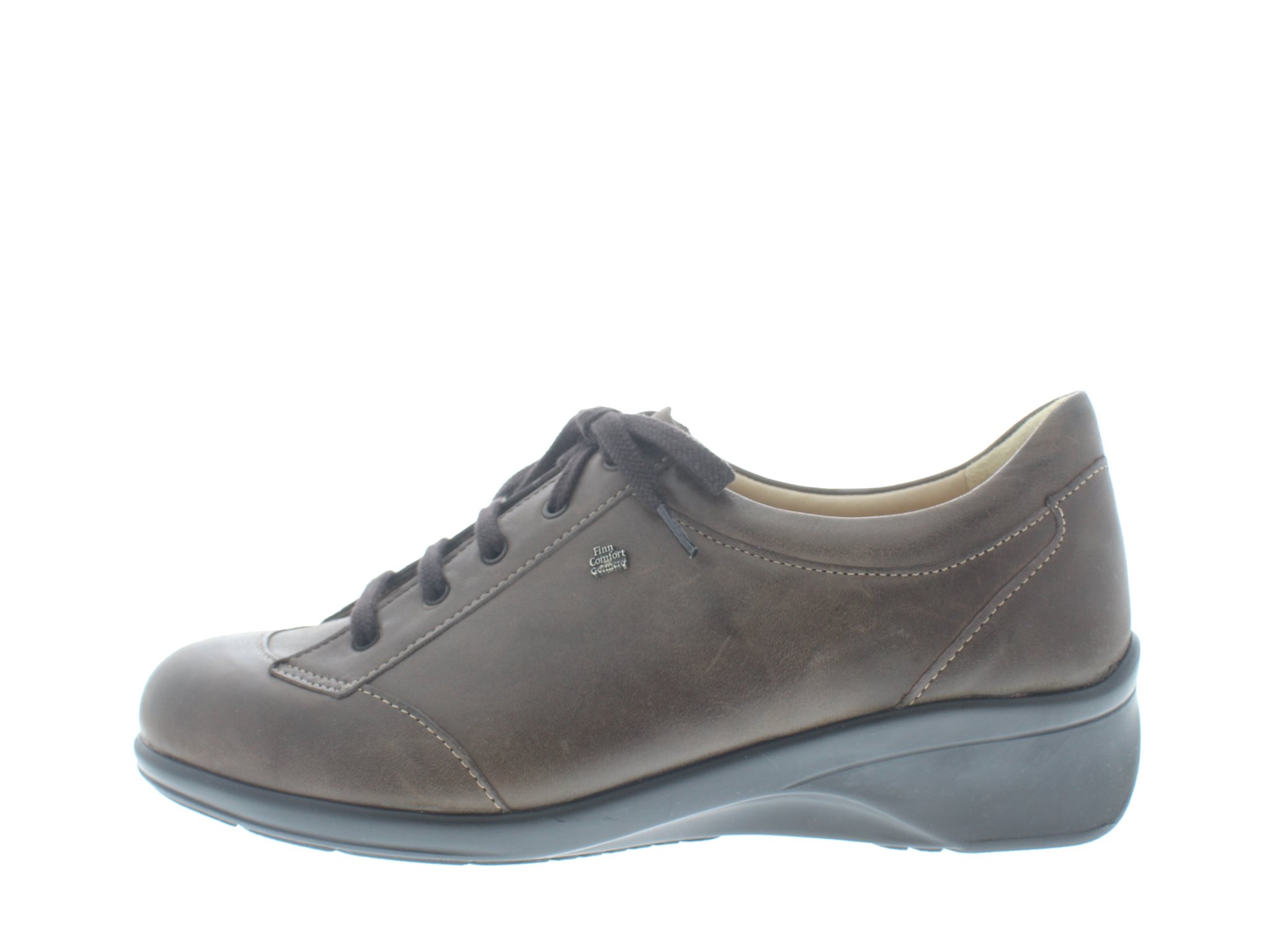 Finn Comfort dames veterschoen, model Estoril uit de City lijn. Voorzien van een flexibele zool met een hakverhoging voor een betere rugpositie. Bruin leer. Valt als een wijdte H. Geschikt voor de normale tot iets bredere voet. Uitneembaar ecologisch en anatomisch gevormde voetbed. Finn Comfort inlegzolen zijn los verkrijgbaar.