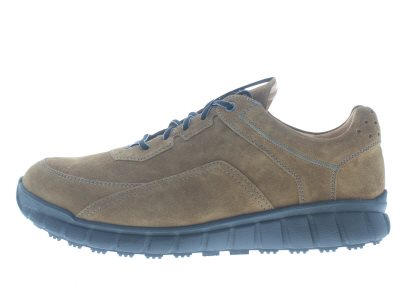 Ganter heren afwikkel sneaker, model Evo Herren uit de Leichtlauf-Tec/Vario lijn. De Leichtlauf technologische afrolzool zorgt voor het verlichten van hiel- en voorvoet gerelateerde klachten, en is goed voor een betere lichaamshouding middels een neutrale rugpositie. Gemaakt van zeer licht EXTRALIGHT dempende rubberen zool en voorzien van een stevige hielslot. Sigaarbruin suède leer, met een chroomarme kalfsleren binnenvoering. De schoen is wrijvingsarm door de vloeiende ‘van hiel- naar teen’ afrolovergang van de zool, waarop je zelfs kleine stukjes mee kan hardlopen. De Evo is gemaakt op een wijdte H. Geschikt voor de normale tot iets bredere voet. Dit model is chroomarm.