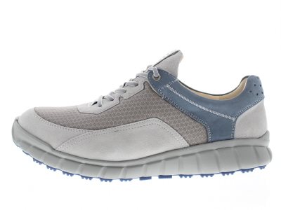 Ganter heren afwikkel sneaker, model Evo Herren met een Leichtlauf technologische afrolzool, waardoor deze geschikt is voor het verlichten van hiel- en voorvoetklachten en goed is voor een betere lichaamshouding en een neutrale rugpositie. Gemaakt van zeer licht EXTRALIGHT dempende rubberen zool en voorzien van een goede hielslot. Jeans blauw nubuck gecombineerd met grijs suède en mesh, en een chroomarme kalfsleren binnenvoering. De schoen is wrijvingsarm door de vloeiende van hiel- naar teen afrolovergang van de zool, waarop je zelfs kleine stukjes mee kan rennen. De Evo is gemaakt op een wijdte H leest.