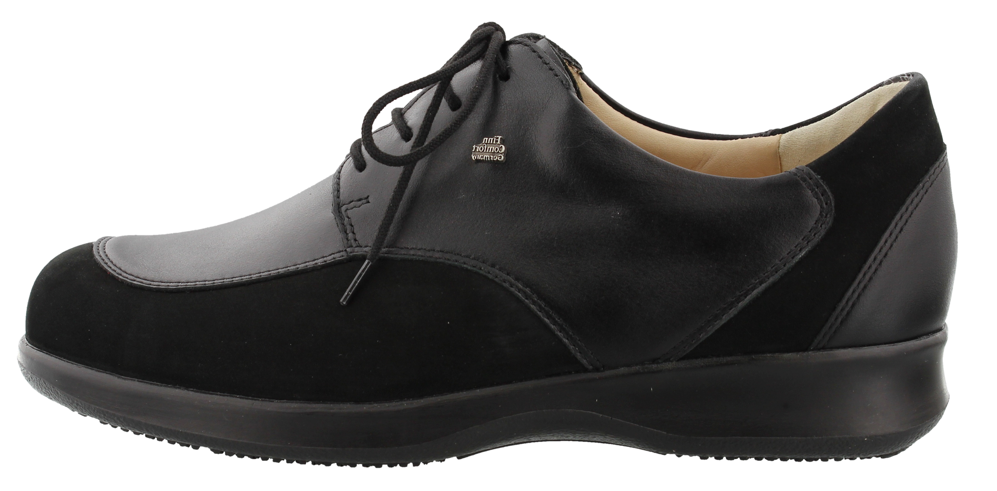 Finn Comfort dames veterschoen, model Evora uit de CitySport lijn. Voorzien van een stevige loopzool met teensprong voor het makkelijk afwikkelen van de voet. Zwart leer gecombineerd met nubuck. Valt als een wijdte H, geschikt voor de normale tot iets bredere voet. Uitneembaar ecologisch en anatomisch gevormde voetbed. Finn Comfort inlegzolen zijn los verkrijgbaar.