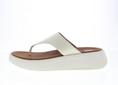 Fitflop dames slipper, model F-Mode Leather Flatform. De F-Mode zool is stugger en wikkelt makkelijker af dan de klassieke onderwerken. Zeer gunstig bij een gelimiteerde beweging van het grote teengewricht. ‘Wobble Board’ comfort technologische loopzool met een stevig rubberen slijtzool met profiel. Deze onderscheid zich bij het bestrijden van hielspoor en voorvoet gerelateerde klachten door middel van een ongekende demping. Crème glad leer. Valt als een wijdte H, geschikt voor de iets bredere voet. Dit model heeft geen uitneembaar voetbed.