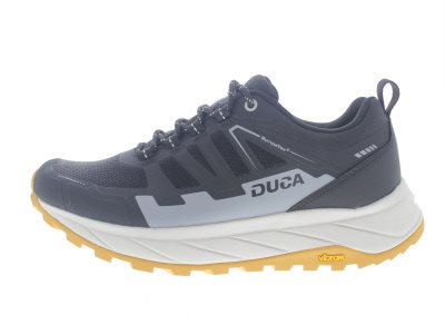 Duca dames wandel-sneaker, model Fortino. Uitgerust met een stevig Vibram onderwerk met een trail slijtzool voor een aangenaam dynamisch en schokdempende afwikkeling. Geschikt voor on- en offroad wandelingen. Aanbevolen bij een geïrriteerde peesplaat, hielspoor en gelimiteerde afwikkelklachten van de grote teengewricht. Waterdichte SympaTex voorziening. Zwart mesh met TPU, volledig synthetisch. Valt als een wijdte G, geschikt voor de normale voet. Uitneembaar voetbed.