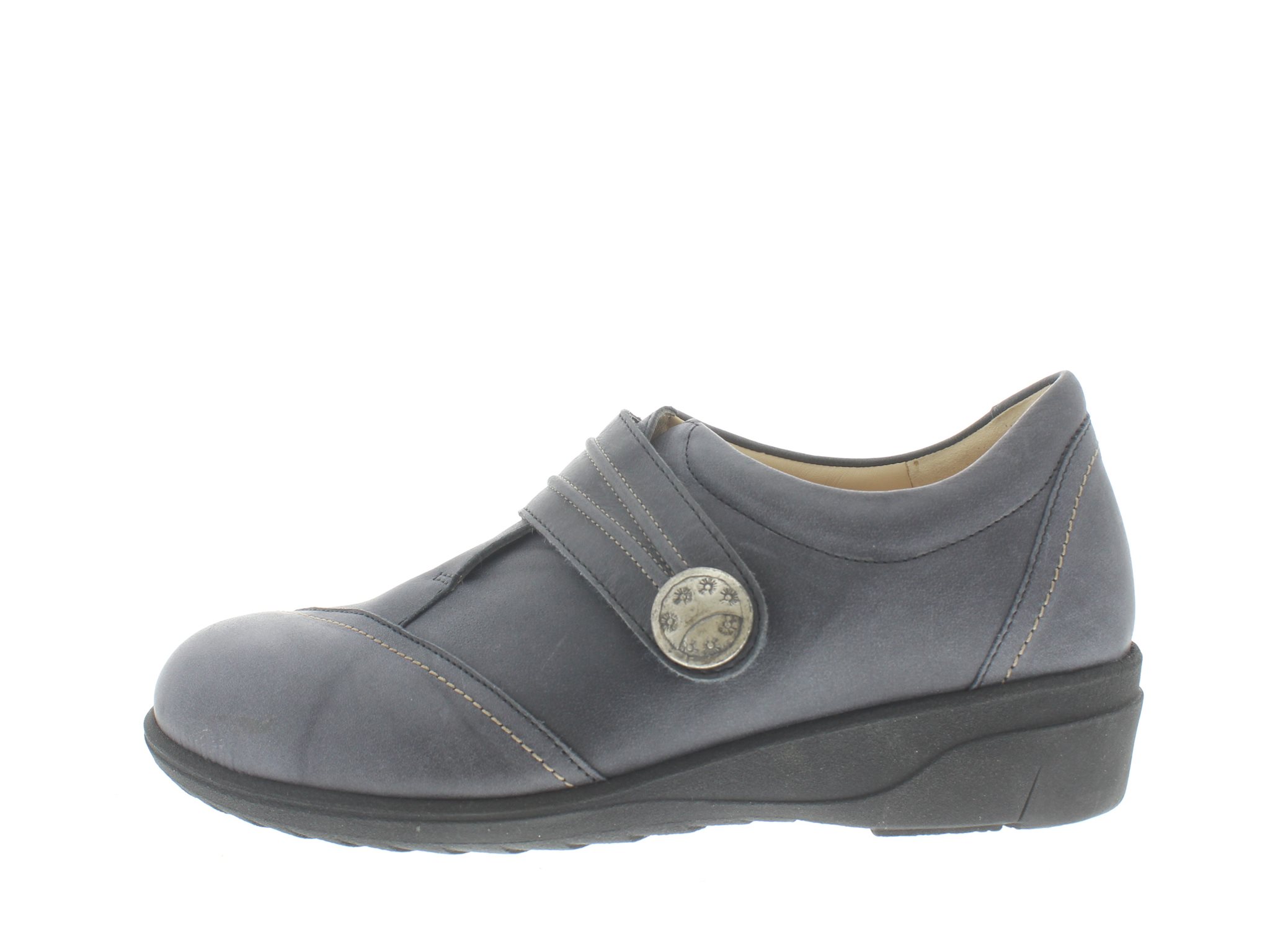 Finn Comfort dames klittenbandschoen, model Galway uit de LadyLine. Voorzien van een enkele overslag klittenbandsluiting met een sierknop. Soepele antislip loopzool en een stevig contrefort voor extrahiel stabiliteit. Blauw glad leer. Valt als een wijdte K met een meer toegeknepen hielslot, ten opzichte van een bredere balwijdte. Geschikt voor de brede voet. Uitneembaar ecologisch en anatomisch gevormde voetbed. Finn Comfort inlegzolen zijn los verkrijgbaar.