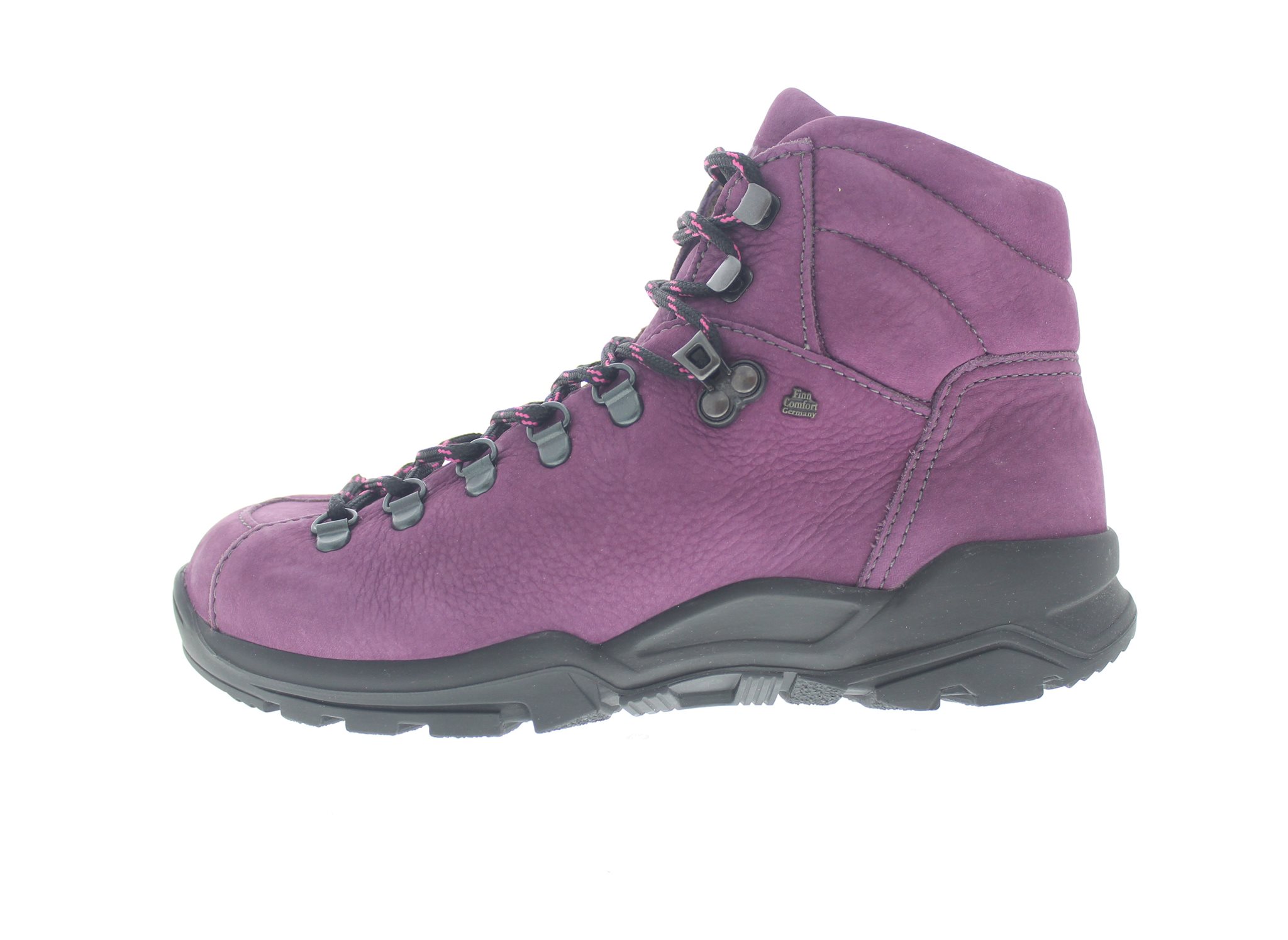 Finn Comfort universele bergwandelschoen, model Garmisch uit de ClassicSport lijn. Voorzien van een stevige afwikkelzool met een breed draagvlak. SympaTex waterdichte hiker voor een goede en droge voetklimaat. Paars nubuck. Valt tussen een wijdte H en K, geschikt voor de bredere tot brede voet. Uitneembaar ecologisch en anatomisch gevormde voetbed.