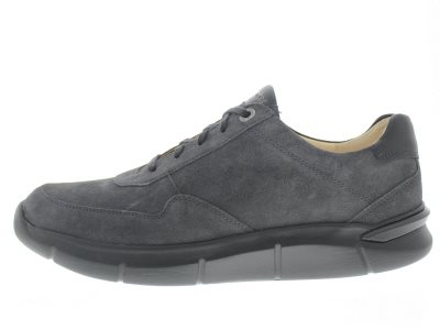 Ganter heren afwikkel sneaker, model George uit de Leichtlauf-Tec/Vario lijn. De Leichtlauf technologische afrolzool zorgt voor het verlichten van hiel- en voorvoet gerelateerde klachten, en is goed voor een betere lichaamshouding middels een neutrale rugpositie. Gemaakt van zeer licht EXTRALIGHT dempende rubberen zool en voorzien van een stevige hielslot. Grijs suède leer, met een chroomarme kalfsleren binnenvoering. De schoen is wrijvingsarm door de vloeiende ‘van hiel- naar teen’ afrolovergang van de zool, waarop je zelfs kleine stukjes mee kan hardlopen. De George is gemaakt op een wijdte G. Geschikt voor de normale voet. Dit model is chroomarm.