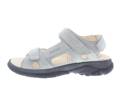 Ganter heren sandaal, model Giovanni uit de Aktiv lijn. Op drie punten verstelbare klittenbandsluitingen en een sportieve loopzool voor veel loopgemak. Lichtgrijs nubuck leer met een chroomarm plantaardig gelooide kalfsleren binnenvoering. Wijdte G, leest geschikt voor de normale tot iets bredere voet. Uitneembaar voetbed met klittenband voorziening.